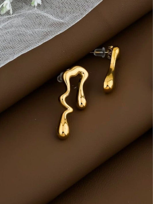 Stylish Irregular Shaped Water Droplet Golden Earrings