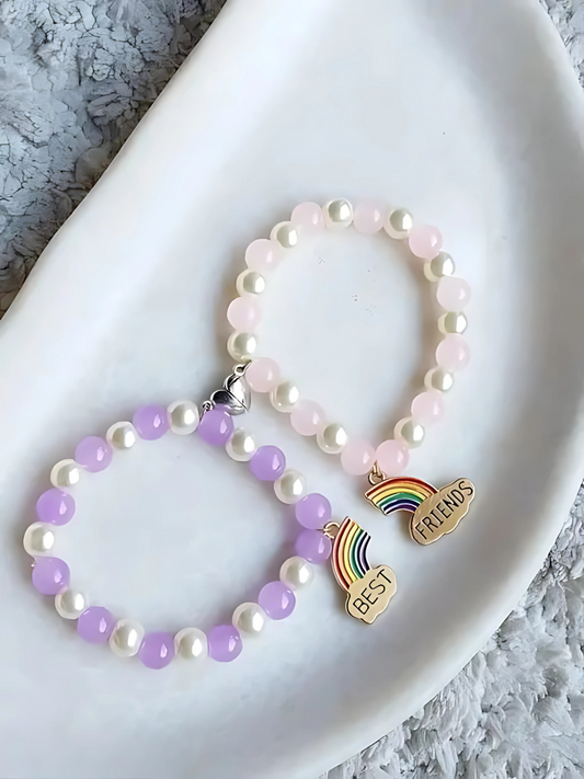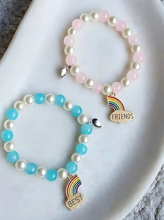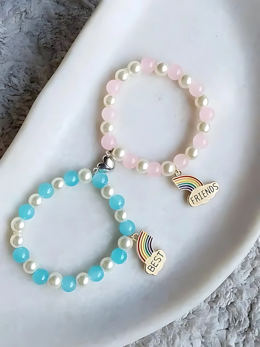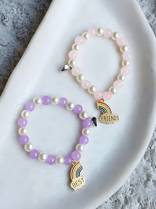 Best Friends Rainbow Charm Pastel Beaded Bracelets