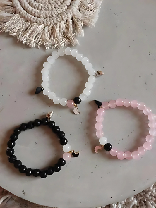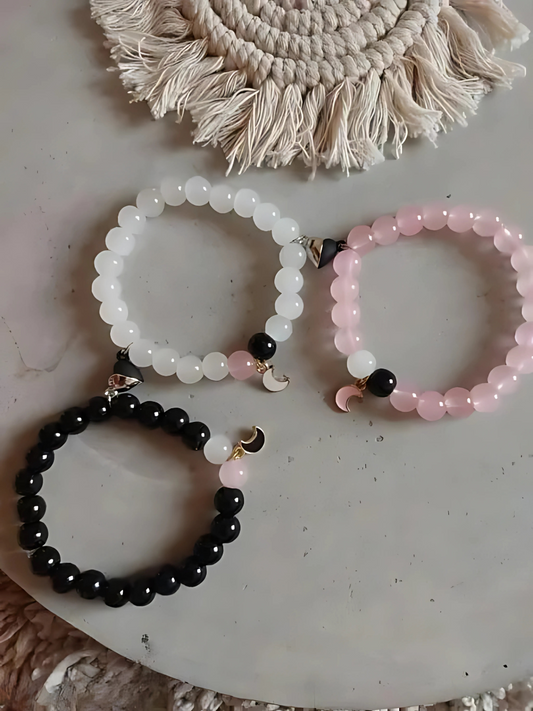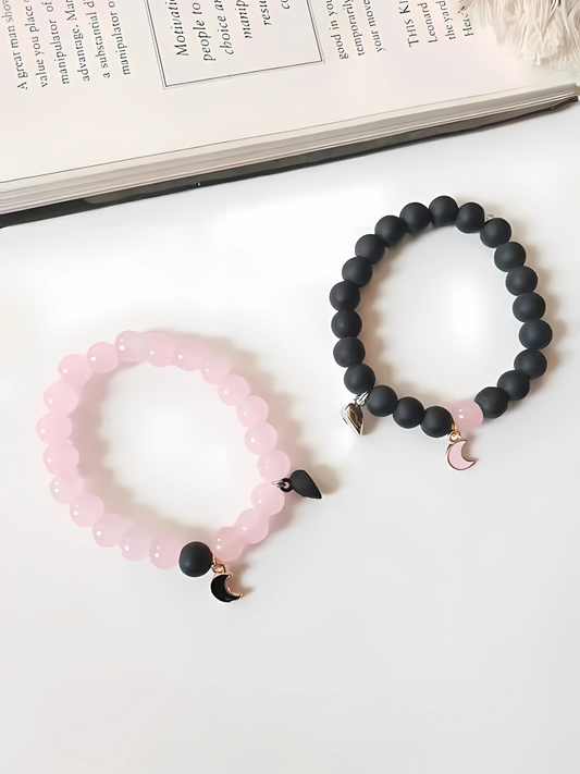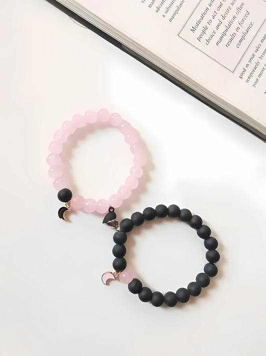 Black and Pink Moon Charms Magnetic Couple Bracelets
