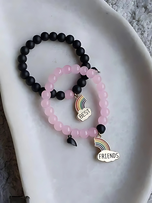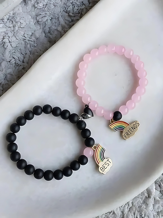 Black and Pink Best Friends Rainbow Charm Beaded Bracelets