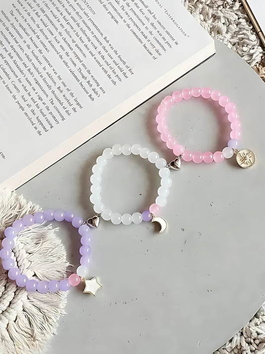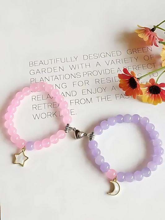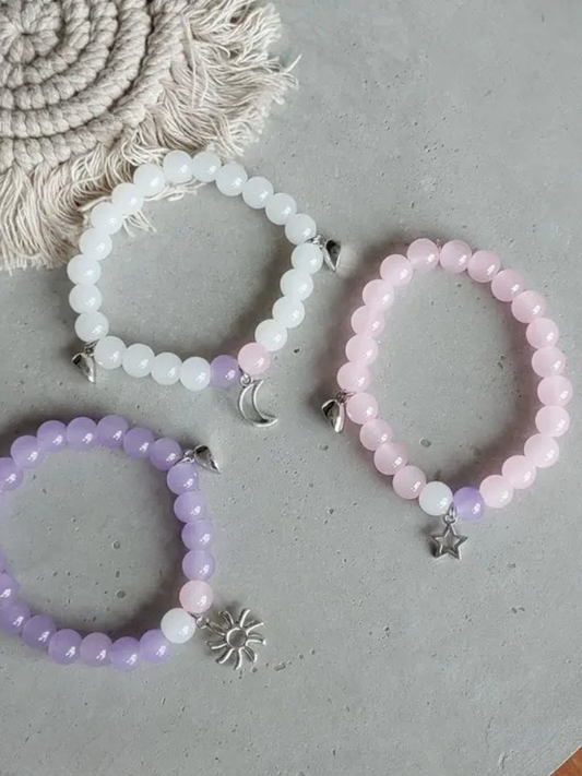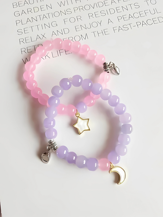 Pink and Lavender Star and Moon Charms Magnetic Beaded Bracelets