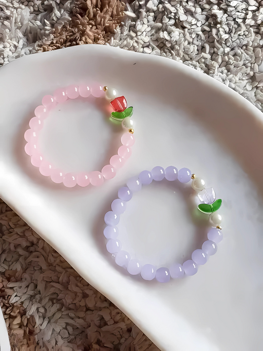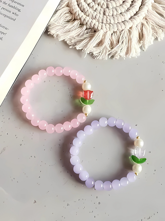 Tulip Charm Baby Pink and Purple Beaded Girls Bracelets
