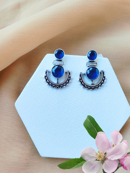Blue Stone Studded Oxidised Silver Dangler Earrings