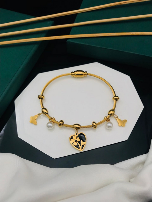 Gold Plated Triple Strand Heart Charm Zircon Bracelet