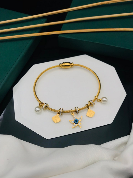 Women's Gold Plated Layered Evil Eye Charm Bracelet