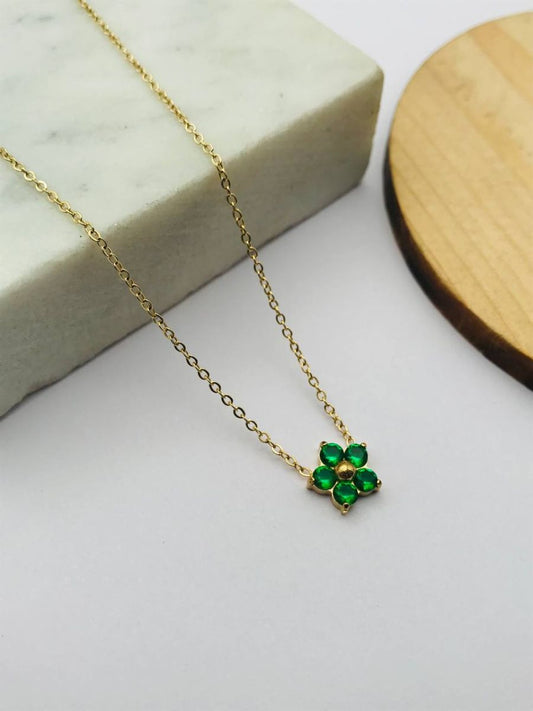 Dainty Colourful Beaded Flower Charms Golden Chain Necklace