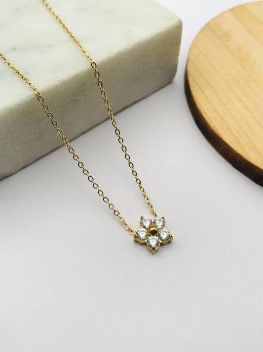 Diamond and Floral Charms Golden Minimal Chain Necklace