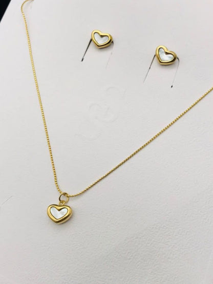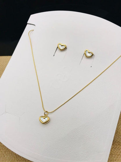 Add a touch of charm and whimsy to any outfit with our Cute Pearl Heart Pendant Golden Plated Necklace with Earrings. The delicate chain necklace features a darling pearl heart pendant and coordinating earrings. Elevate your style with this playful and elegant accessory set. Shop now!