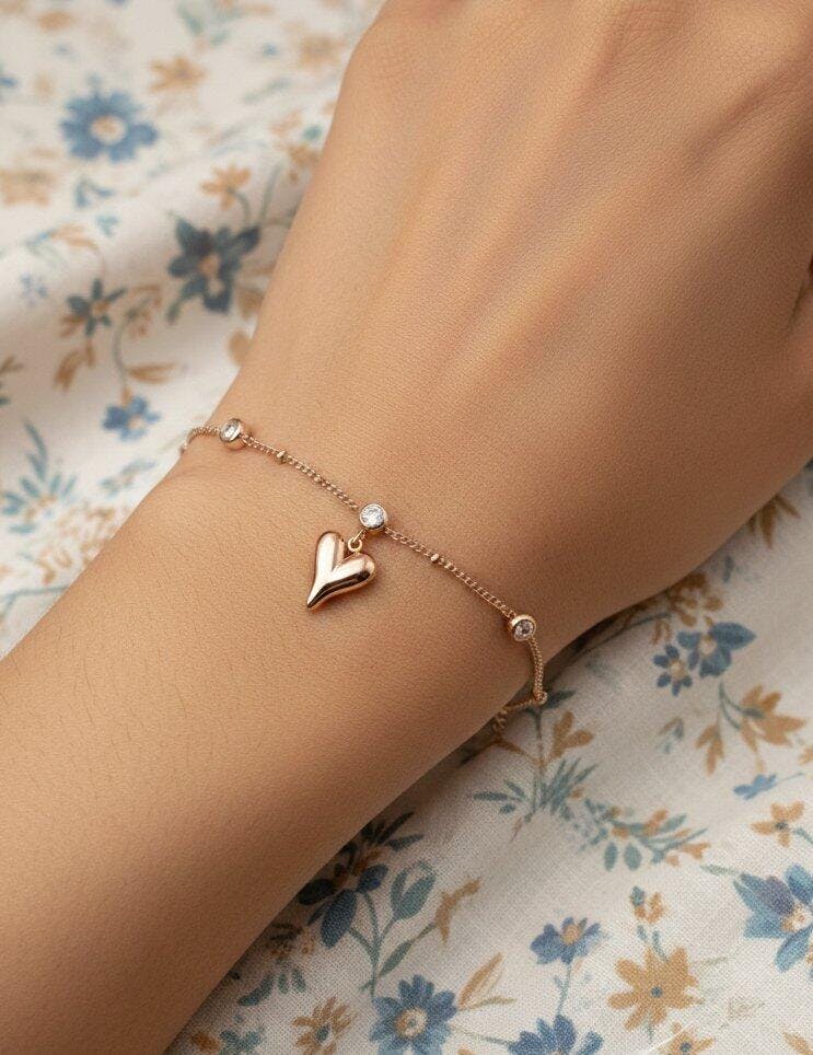 Hanging Heart Charm Rose Gold Diamond Bracelet