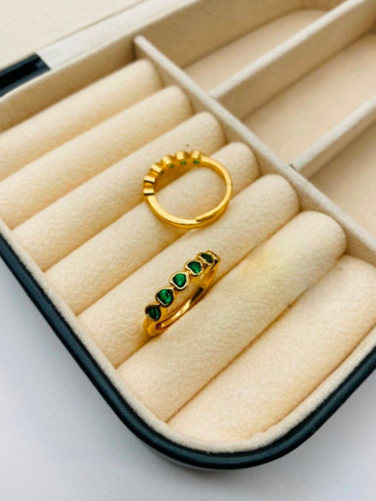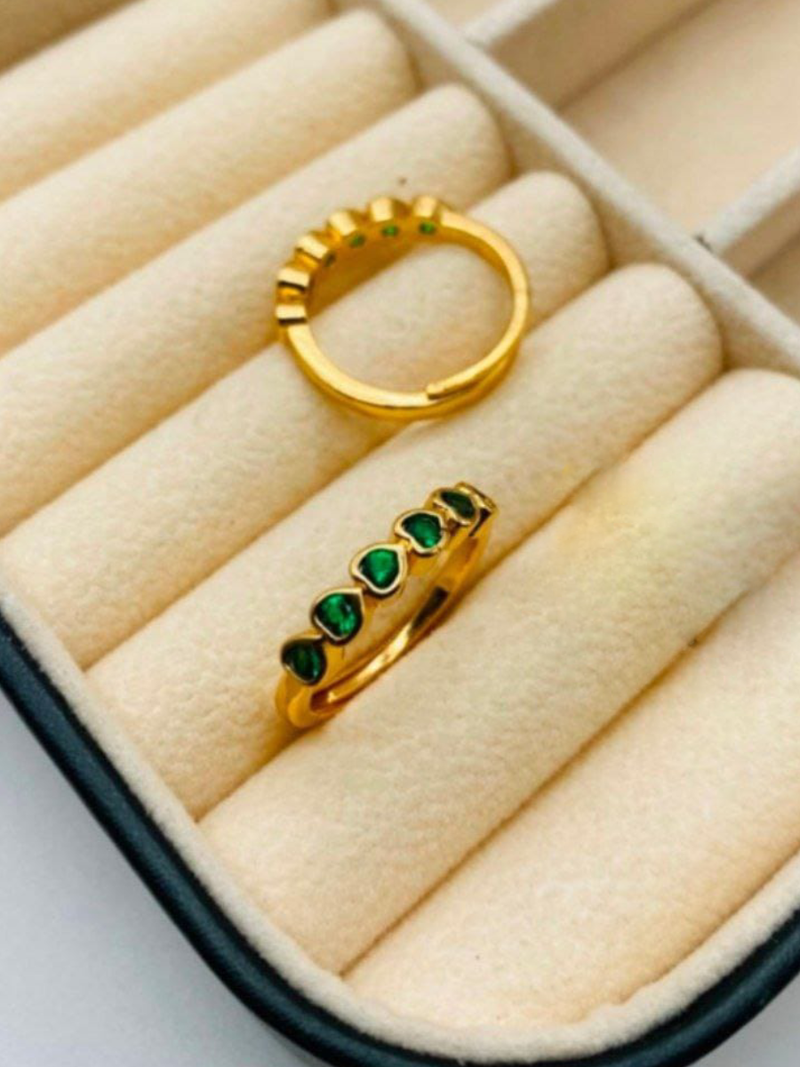 This elegant ring features a heart-shaped green stone set in a minimalist gold band. The free size design ensures a comfortable fit for any finger, making it a versatile addition to any jewelry collection. Perfect for adding a pop of color to your everyday look or as a thoughtful gift for a loved one.