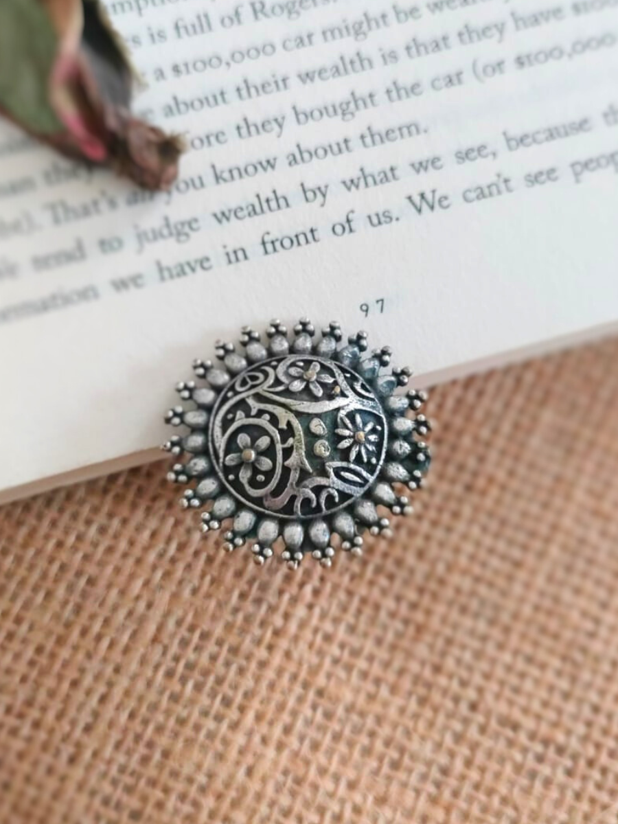 Kolhapuri Style Round Oxidised Silver Finger Ring