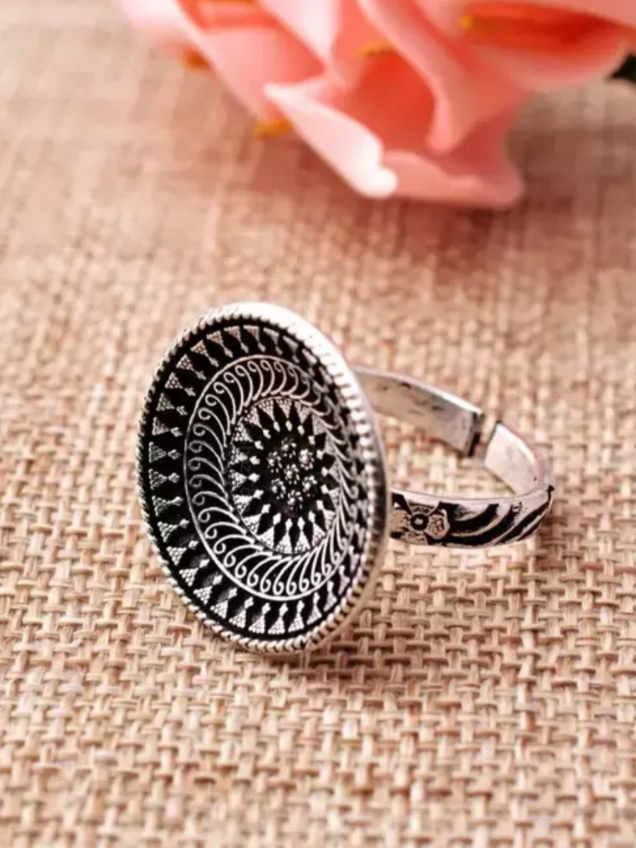 Oxidised Silver Plated Round Adjustable Finger Ring