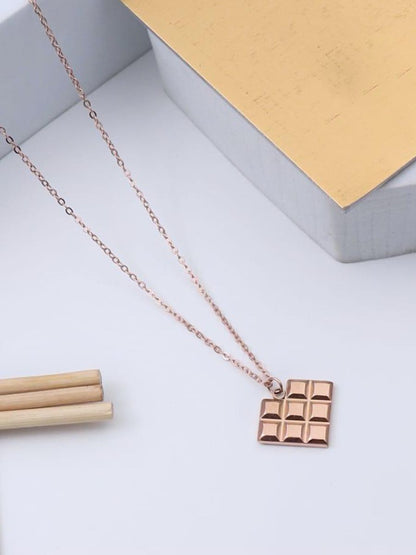 Rose Gold Plated Chocolate Bar Pendant Chain Necklace