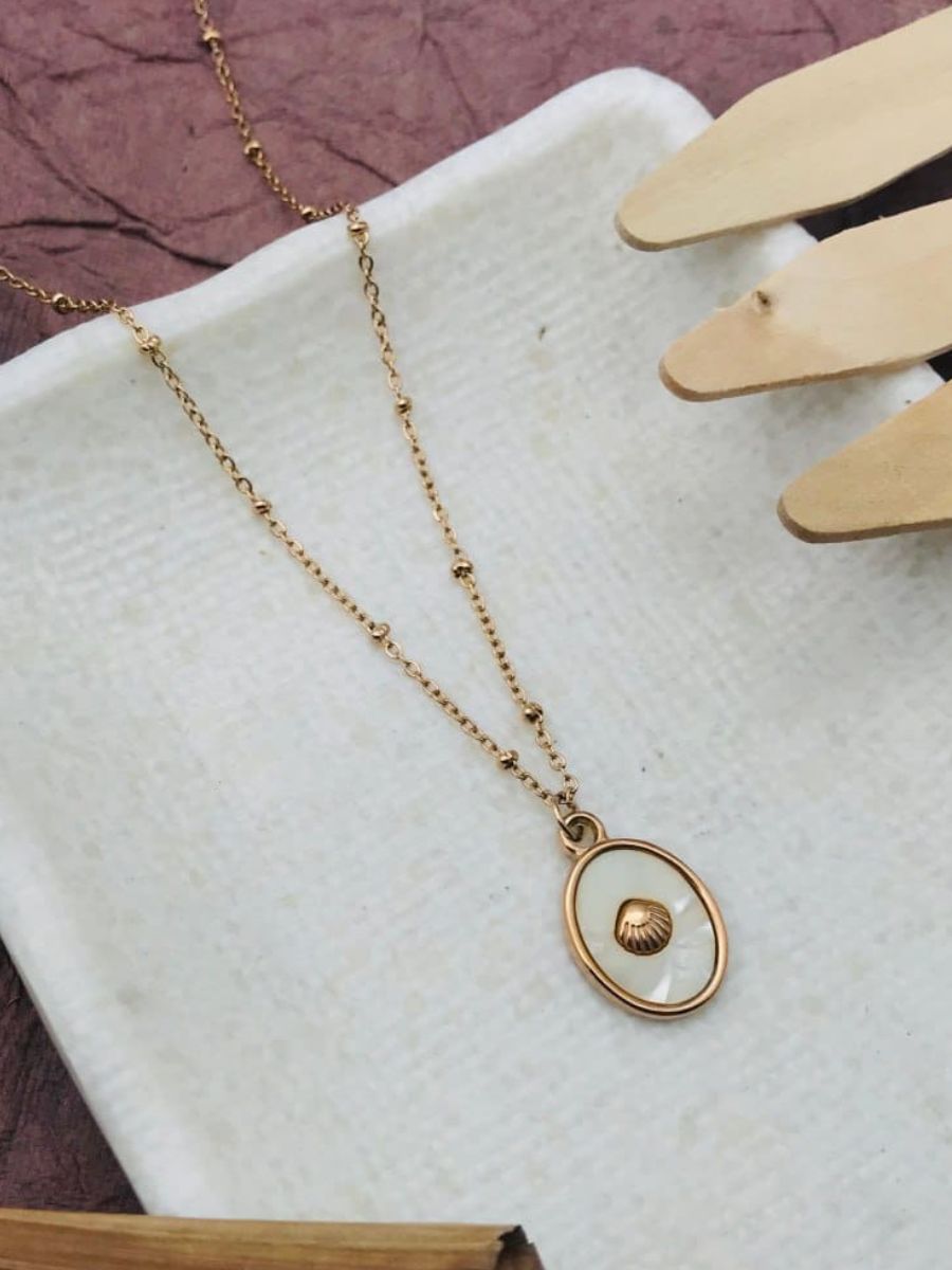 Shell Mother of Pearl Oval Pendant Rose Gold Chain Necklace