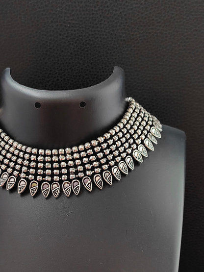 Discover understated elegance with our Simple Oxidised Silver Choker Necklace. Crafted to perfection, its minimalist design exudes a touch of vintage allure while adding a modern edge to any ensemble. Versatile and chic, this choker is an essential addition to your jewelry collection, capturing beauty in simplicity.